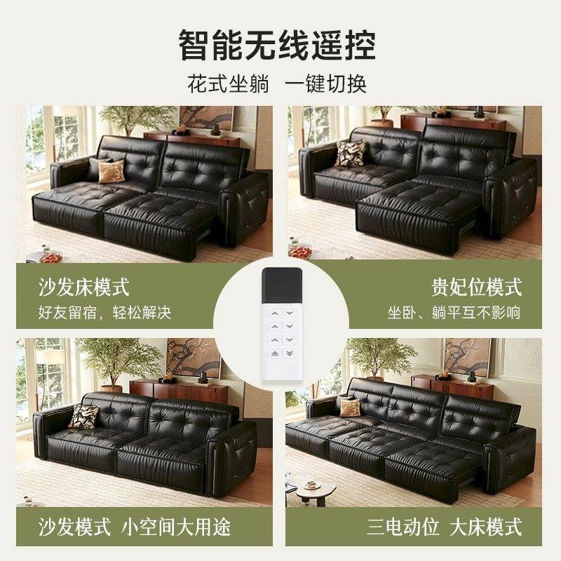 头层牛皮电动功能沙发客厅简约2025新款智能平推可趟可伸缩拖床