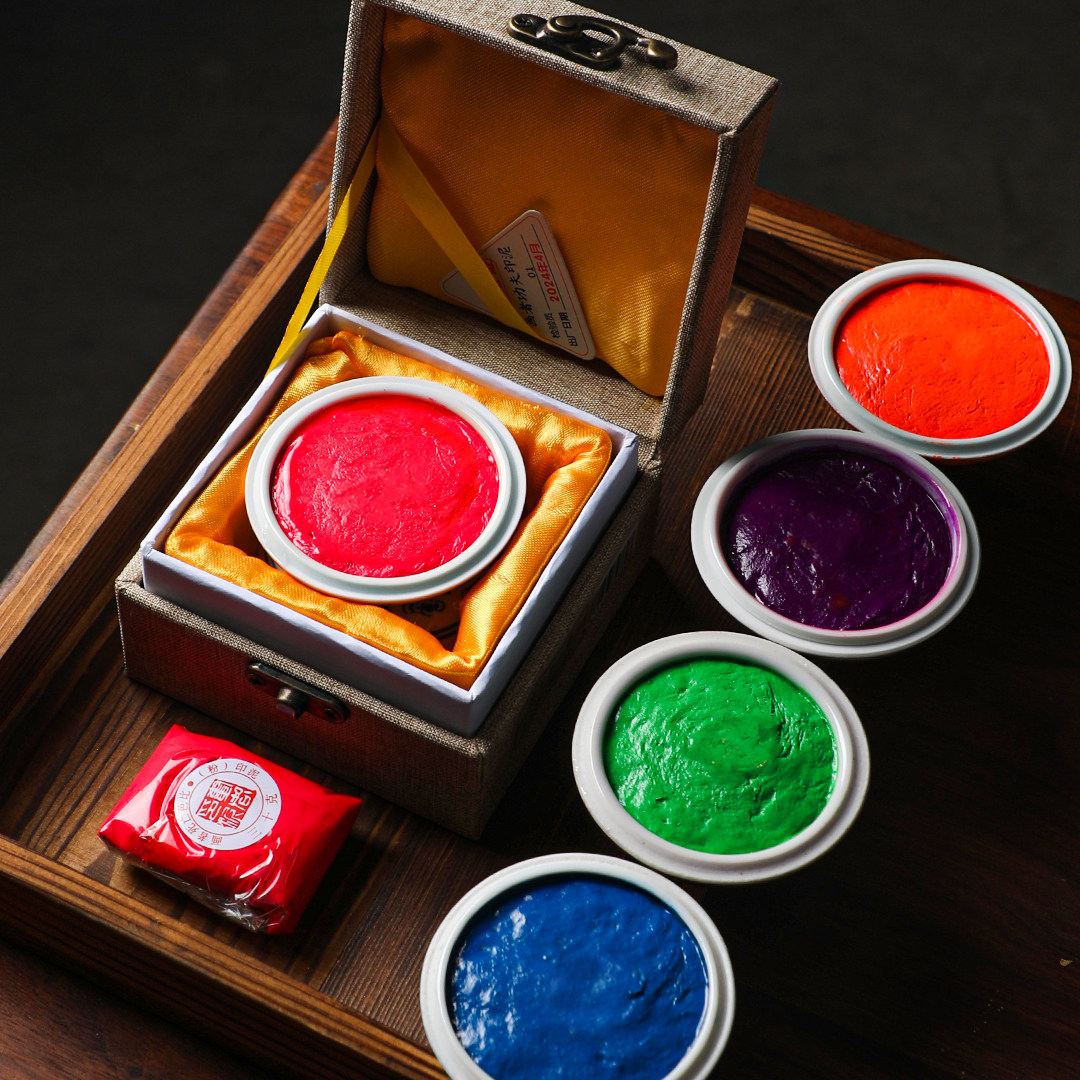 曹一阁彩色印泥书画专用书法篆刻国画印章盖章朱砂红色绿色蓝色粉色橙色印泥印泥盒文房四宝陶瓷印泥盒