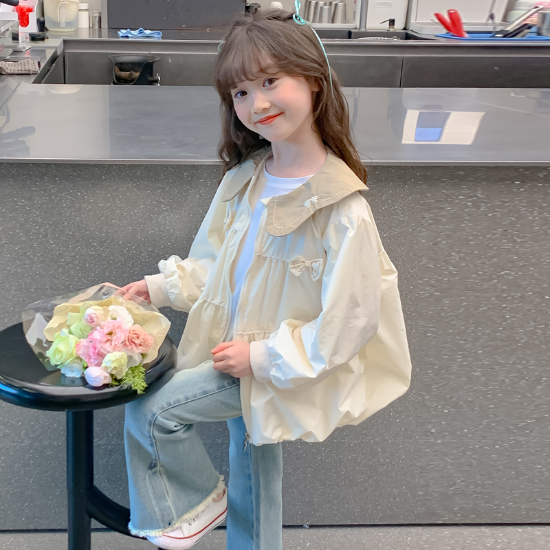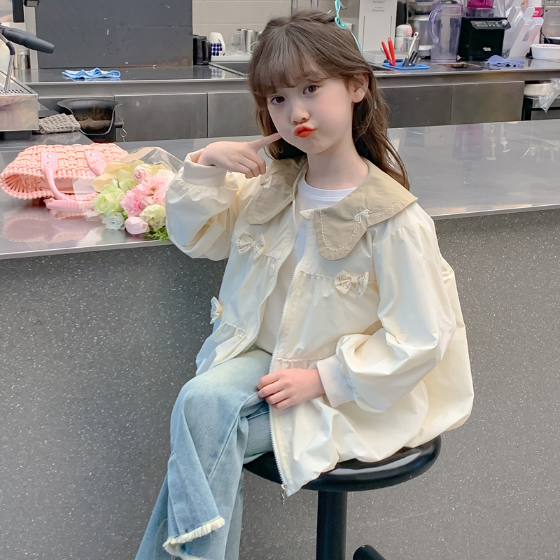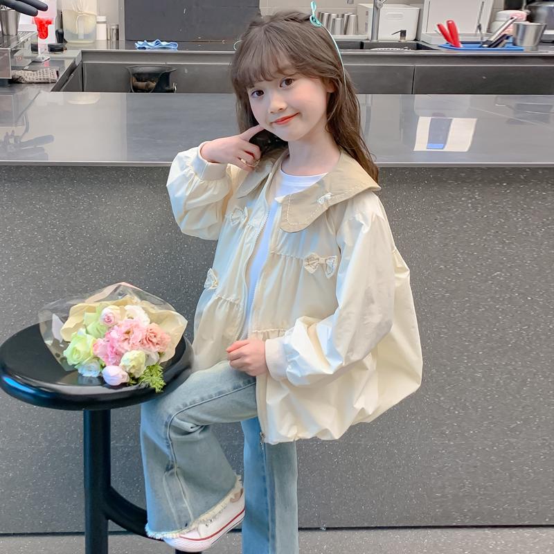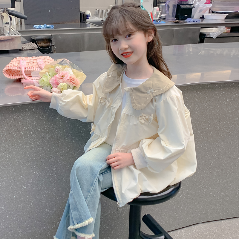 女童秋装外套2025新款儿童洋气韩版网红女孩春秋季蝴蝶结夹克上衣