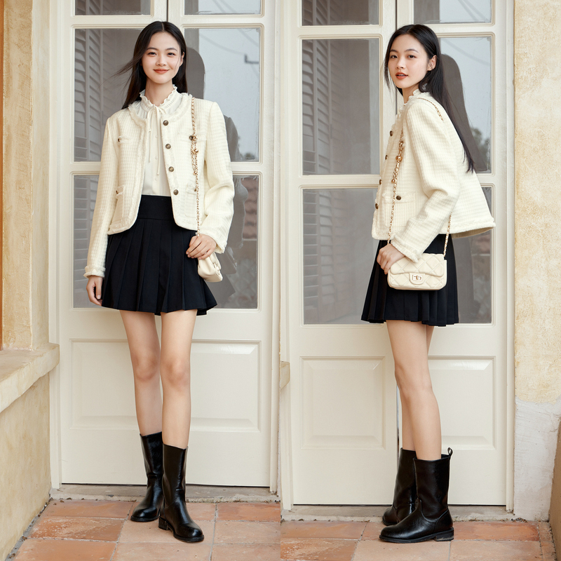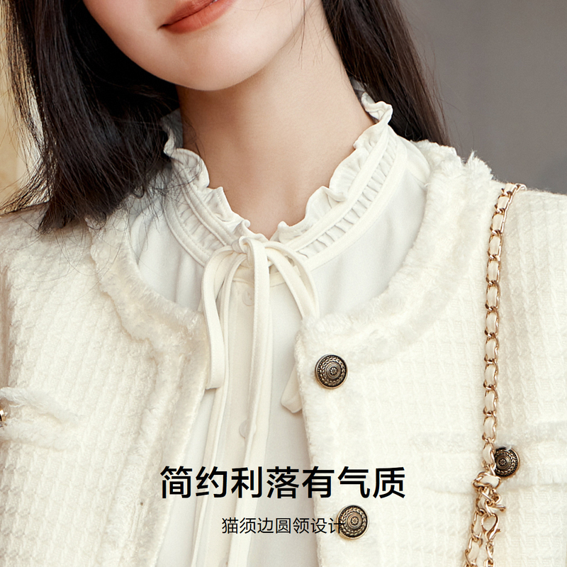 [商场同款]森马外套女短款修身格子粗花呢冬2023新款圆领夹克气质