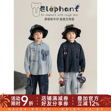 幼悠男童牛仔套装2026春季新款儿童涂鸦印花衬衫宽松直筒休闲裤子