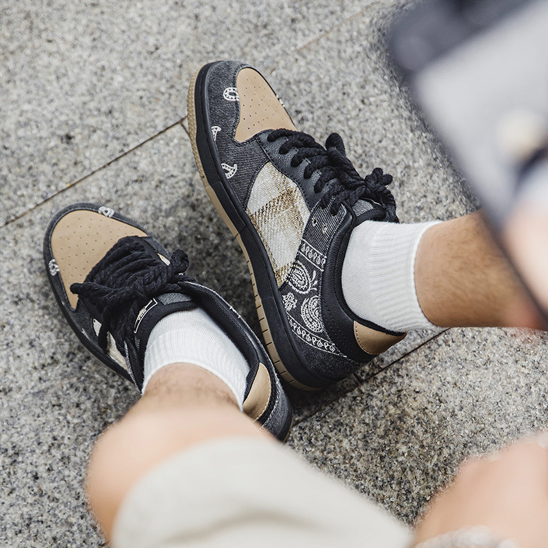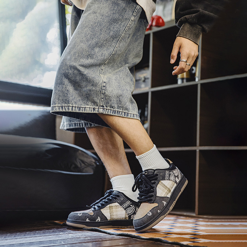 MRA腰果花滑板鞋男2025新款秋季英伦格纹刺绣厚底运动休闲潮鞋子