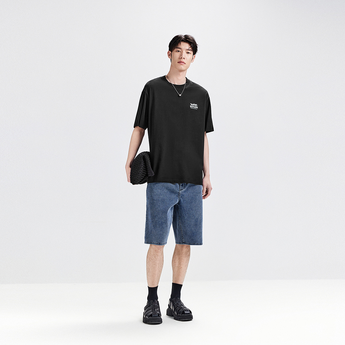 太平鸟男装牛仔裤24夏新款薄款灯芯绒柔软牛仔中短裤竖条五分裤潮