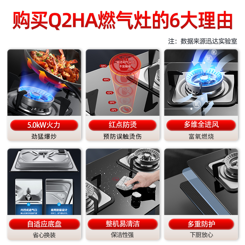 迅达燃气灶双灶家用煤气灶玻璃面板天然气灶嵌入旋流猛火灶台Q2