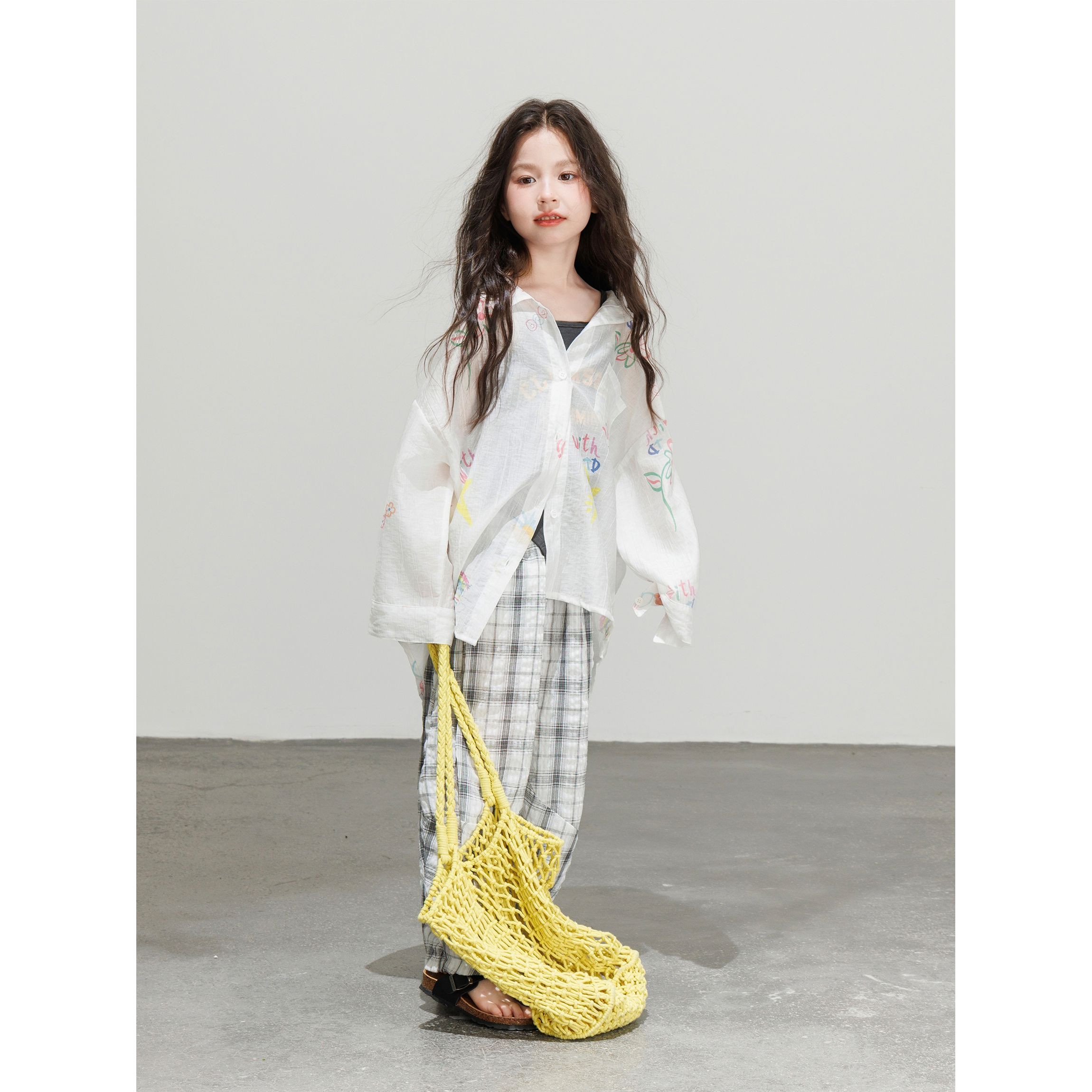 【现货】senbaby女童洋气涂鸦防晒衣衬衫夏装儿童透气防晒外套