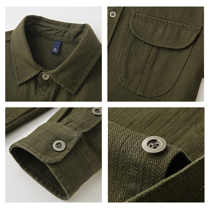 FAFC春季重磅美式复古竹节棉翻领长袖衬衫男纯棉宽松衬衣夹克外套