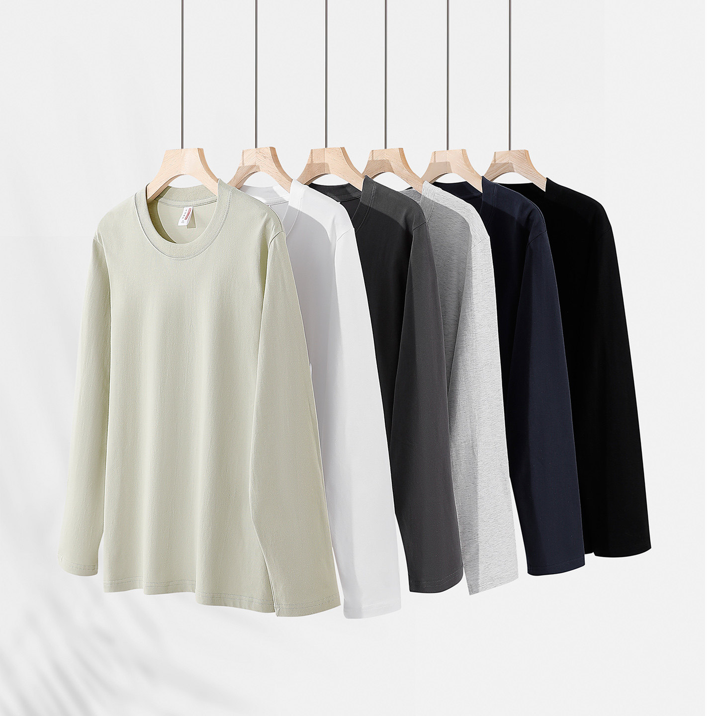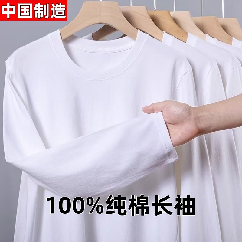 【中国制造】200G纯棉重磅t恤男女同款长袖简约宽松纯色打底上衣