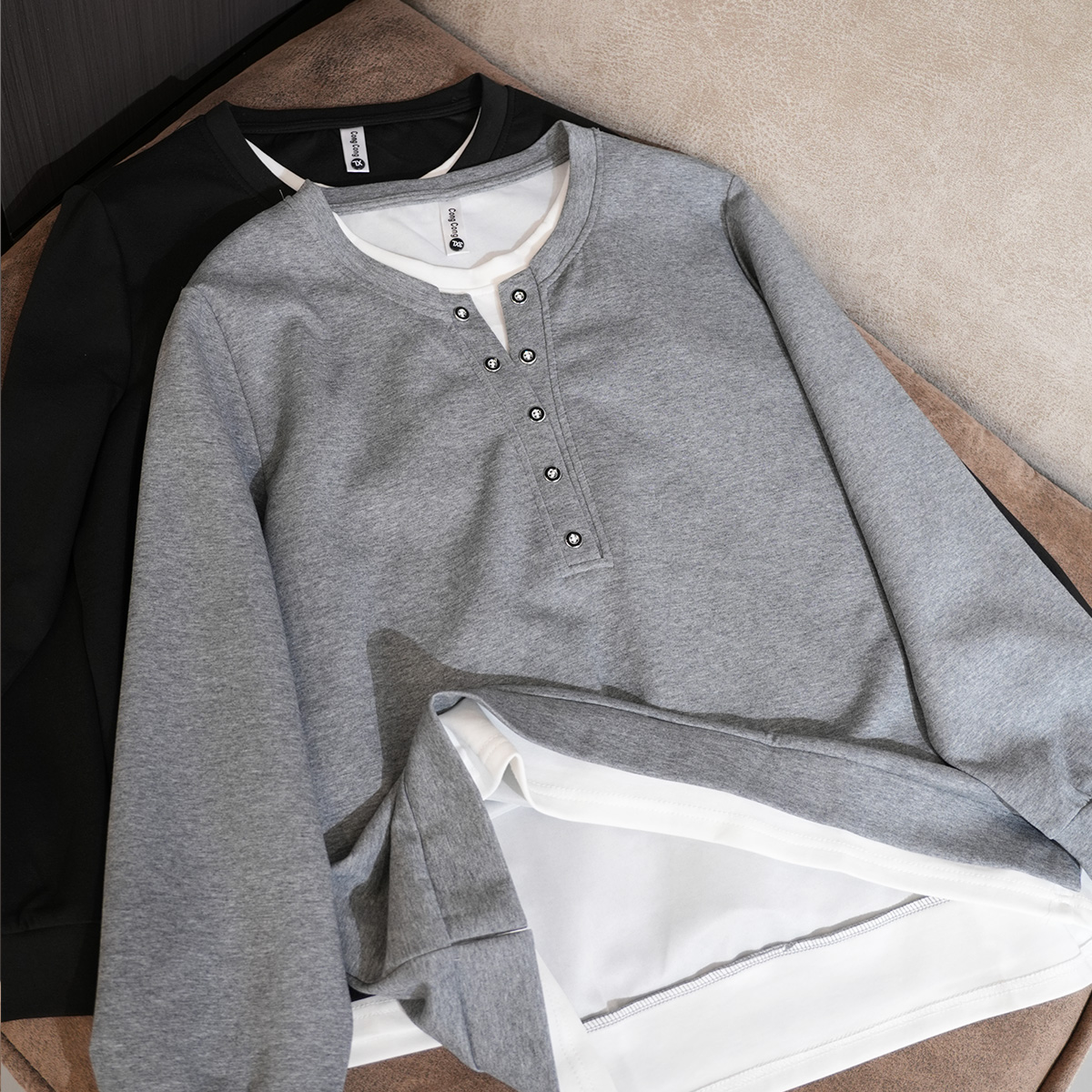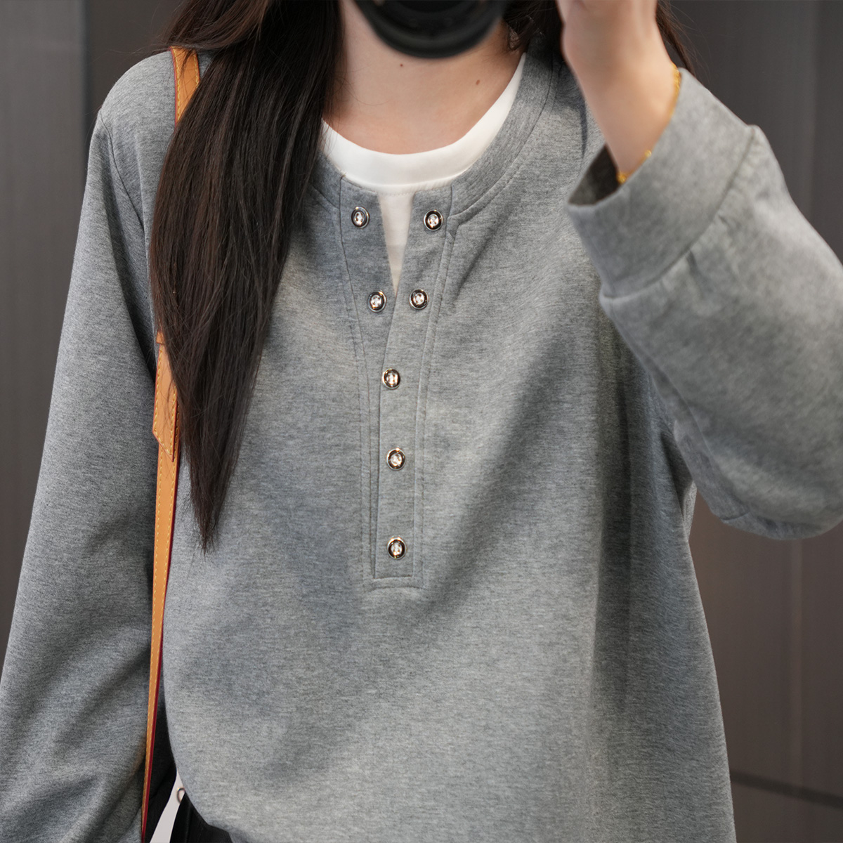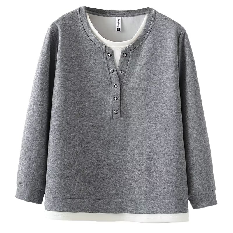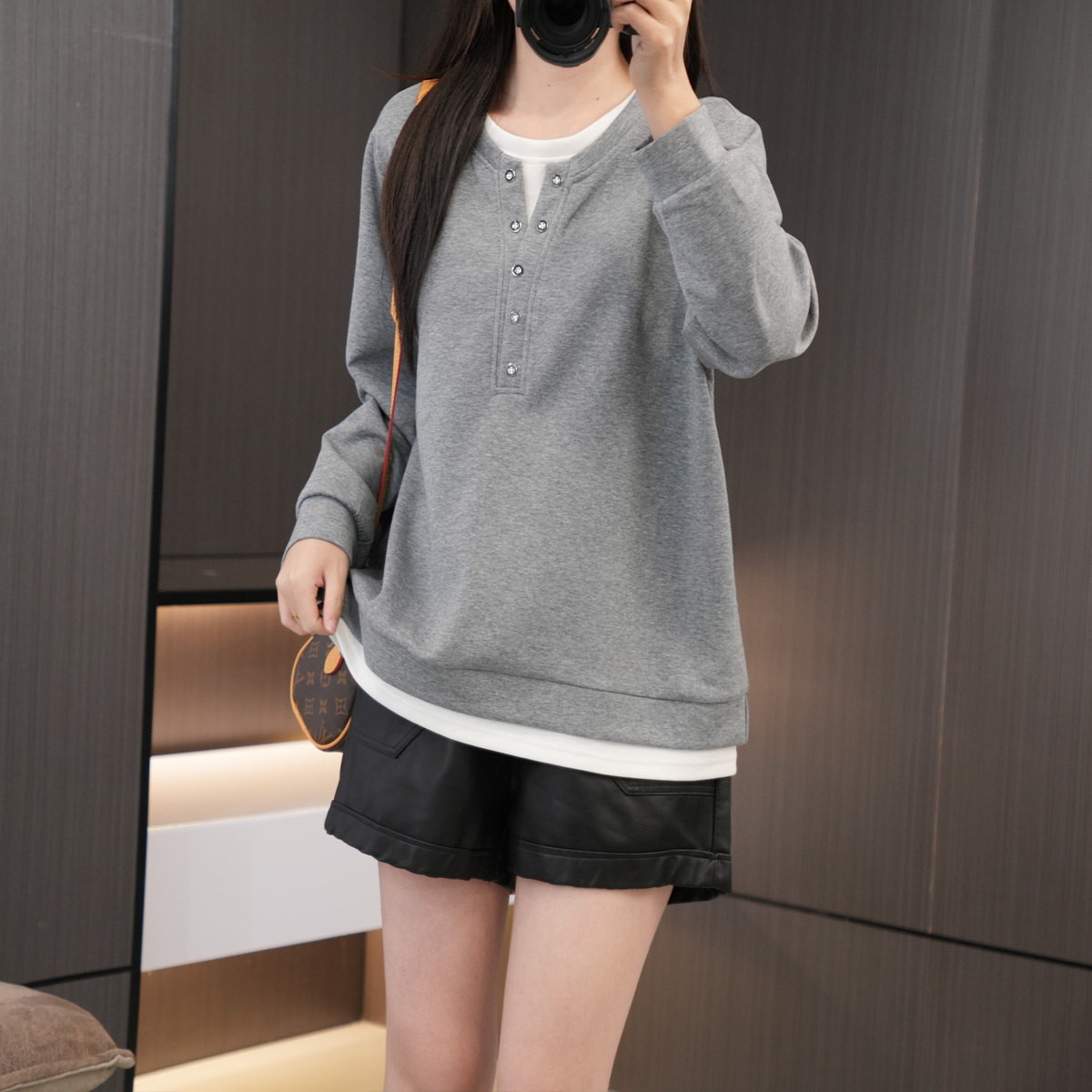 秋季时尚简约撞色白边大码套头卫衣 120-200斤胖mm百搭显瘦假两件