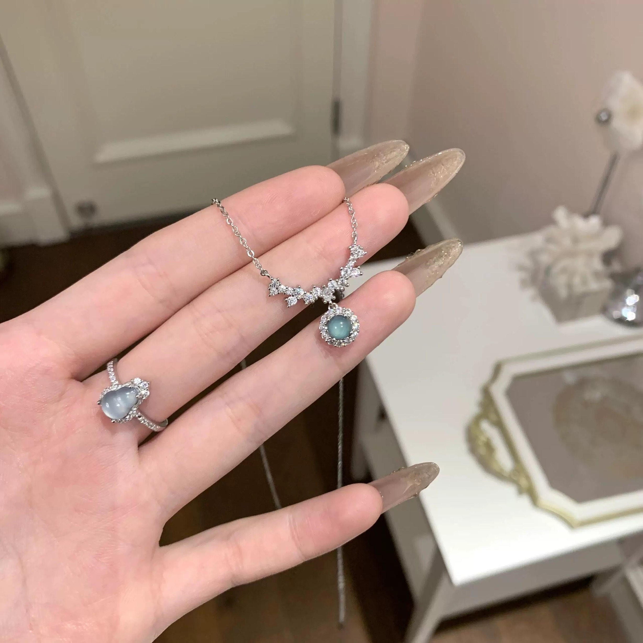 「星星点灯」s999纯银项链蓝水翡翠新中式锁骨链颈链女送闺蜜礼物