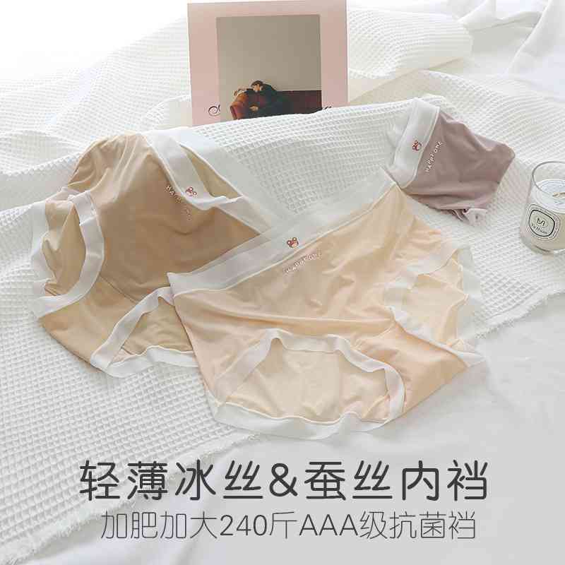 中腰内裤大码胖MM200斤轻薄裸感冰丝速干无痕桑蚕丝裆女士三角裤