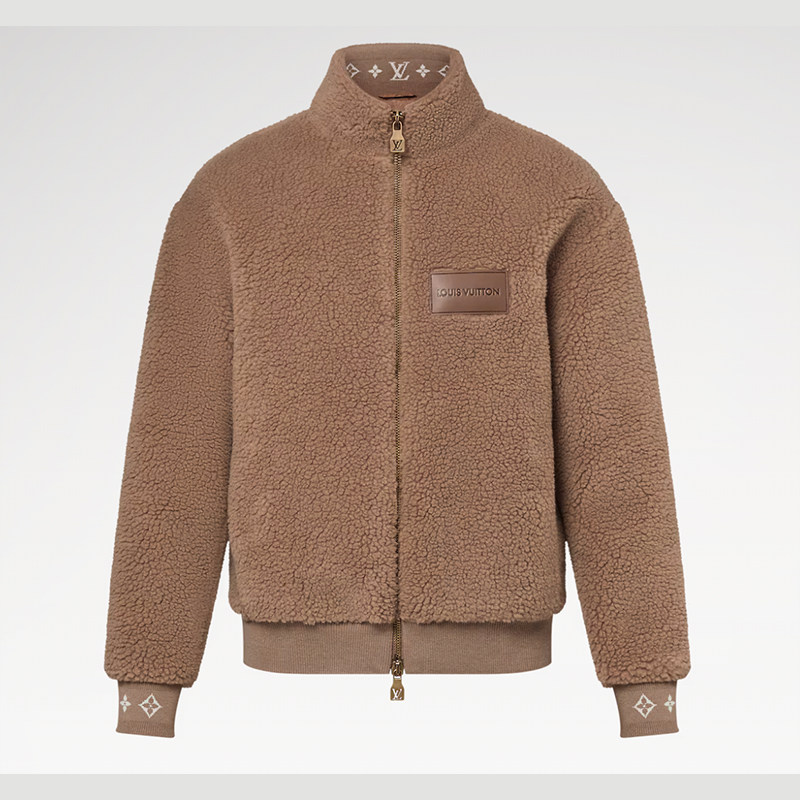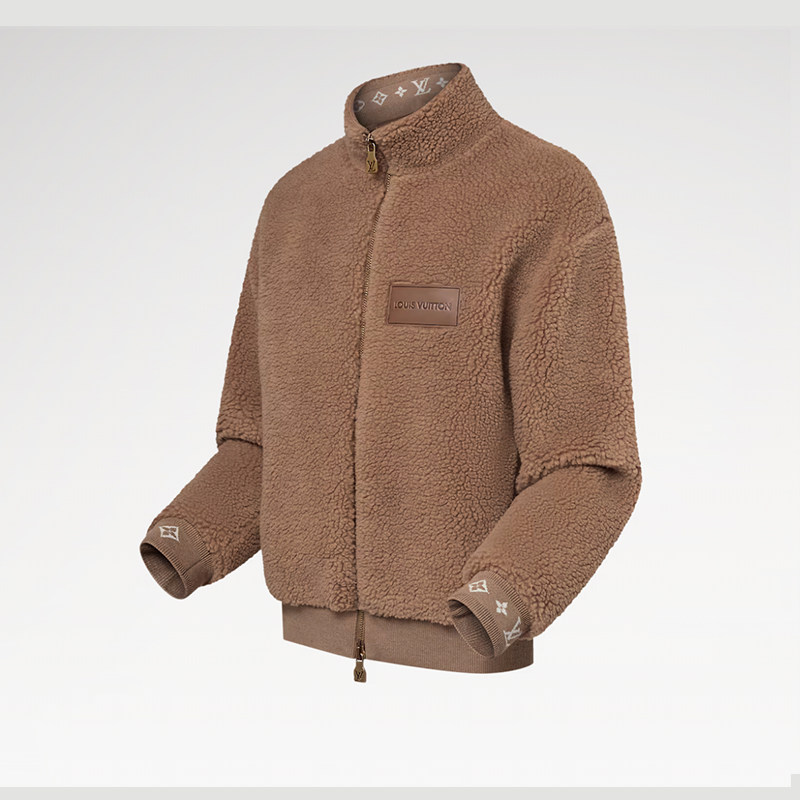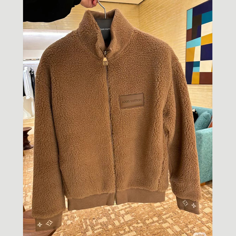 LV路易威登2024新款男装棕色泰迪科技绵羊毛混纺绒面束腰夹克外套