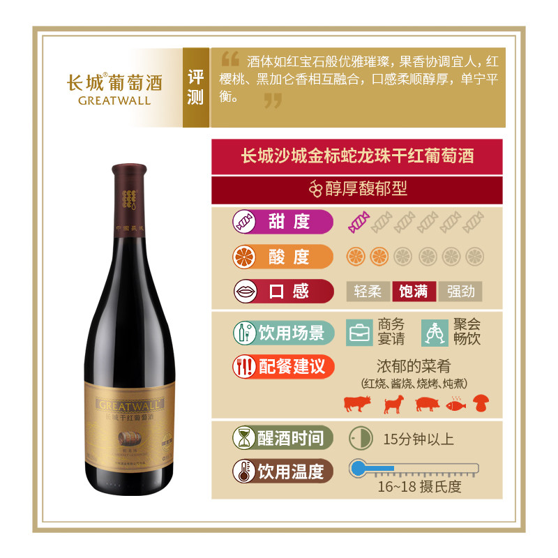 金标蛇龙珠干红葡萄酒红酒正品1瓶怀来红酒【长城酒官方旗舰店】
