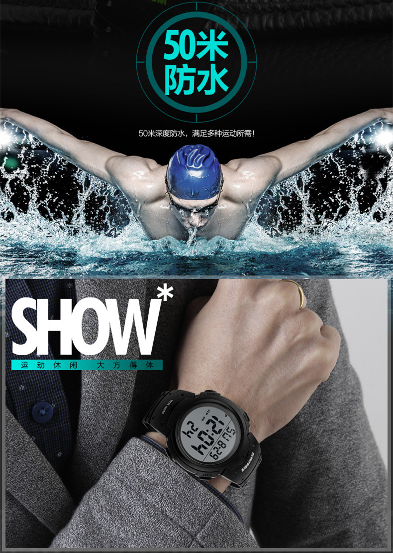 时尚户外防水运动男士电子表夜光多功能学生腕表男数字式老人手表