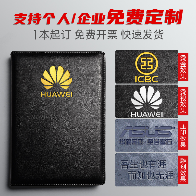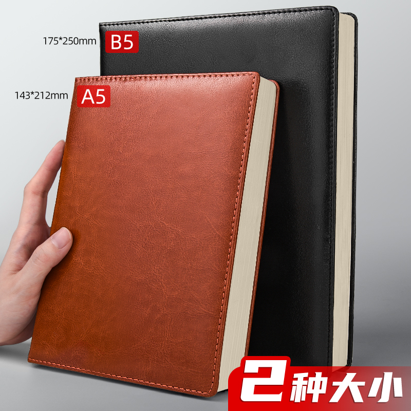 a5笔记本子定制可印logo超厚加厚记事本商务b5黑色皮面本工作会议记录本子办公简约大学生日记本高档软皮批发