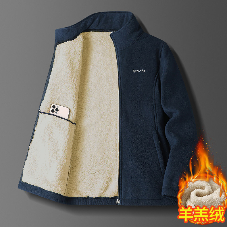 摇粒绒夹克男秋冬款加绒加厚羊羔绒外套立领抓绒卫衣男装上衣内胆