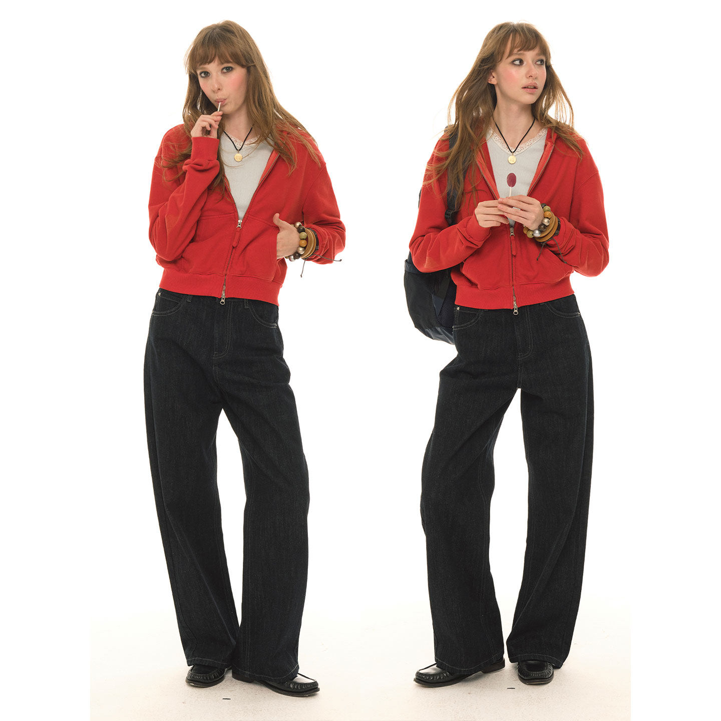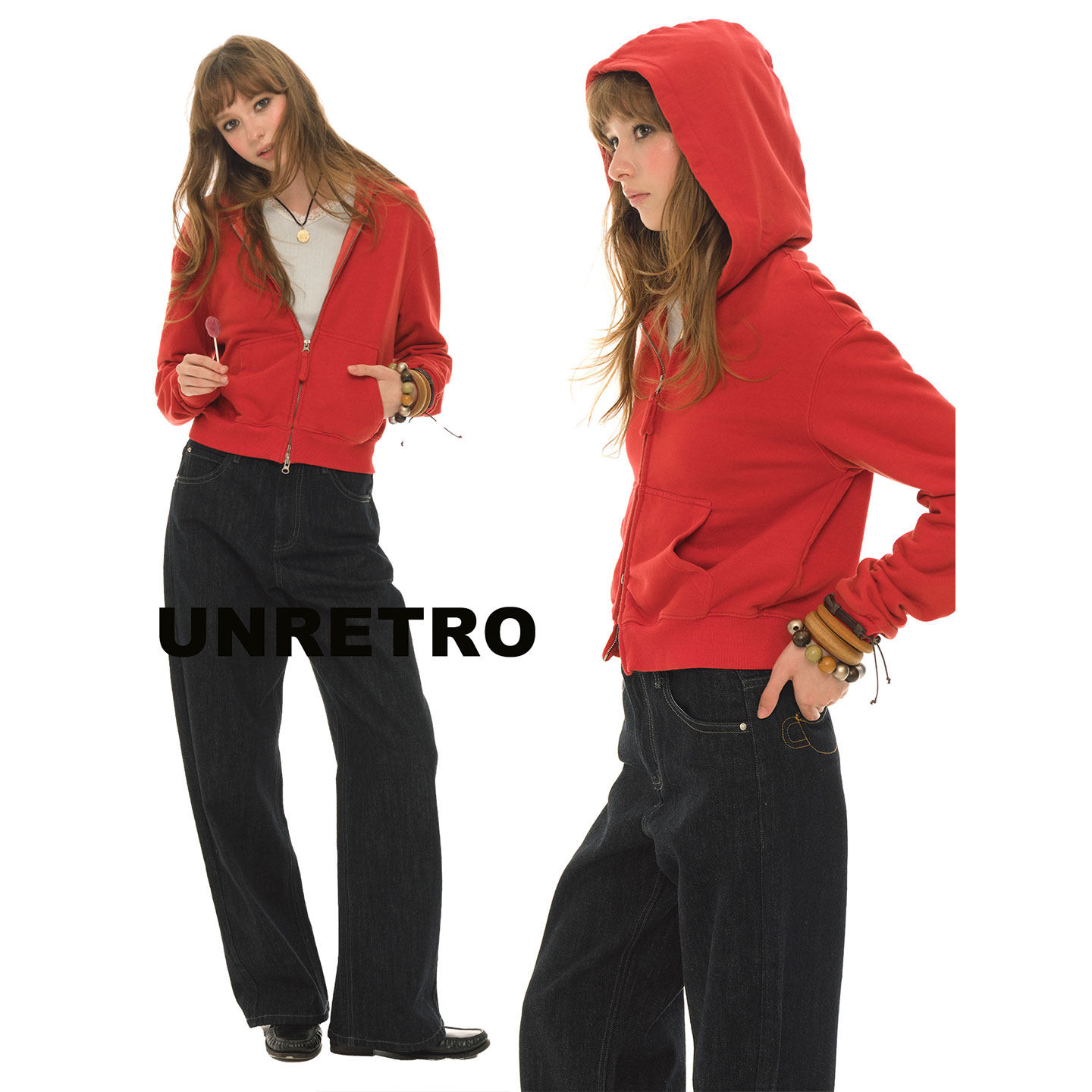 UNRETRO新年红色短款卫衣外套女