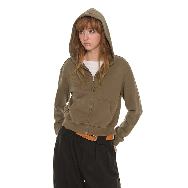 UNRETRO 360G重磅美式复古新年红色短款外套女秋运动长袖拉链卫衣