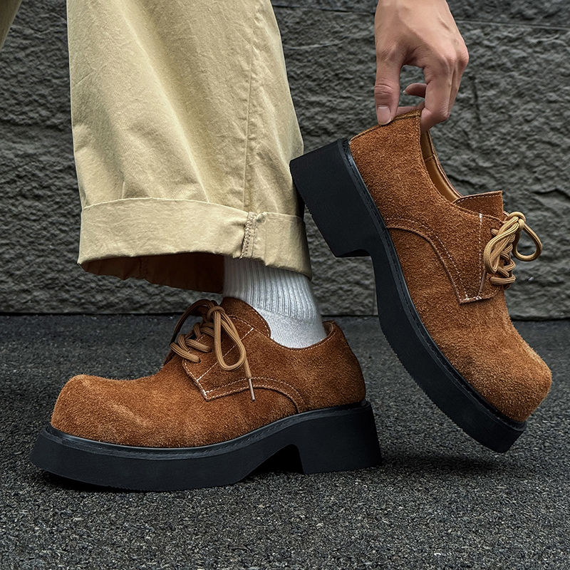 cleanfit翻毛皮德比鞋男英伦美式复古工装鞋厚底增高大头休闲皮鞋