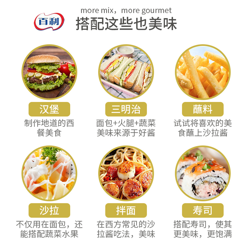 百利沙拉酱烘焙专用型1kg可烘烤沙拉酱面包蛋糕寿司披萨色拉酱
