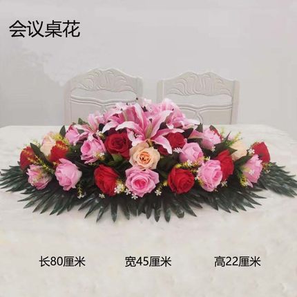 热销办公室会议桌花仿真花长桌摆放假花商务酒店布置装饰台花绢花