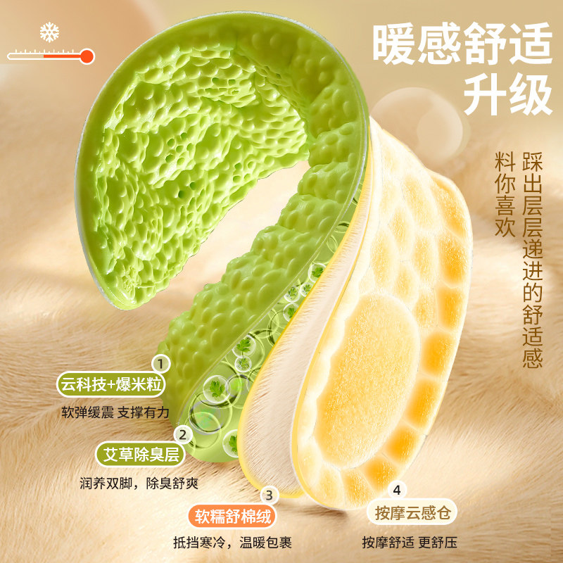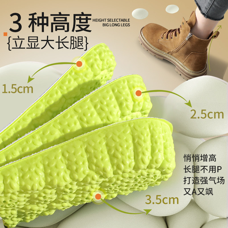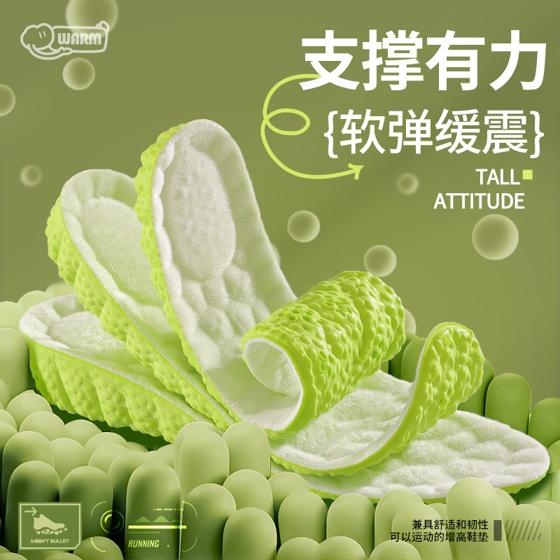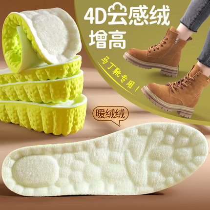 4D云感内增高保暖鞋垫男女隐形踩屎感不累脚马丁靴加绒棉增高垫冬