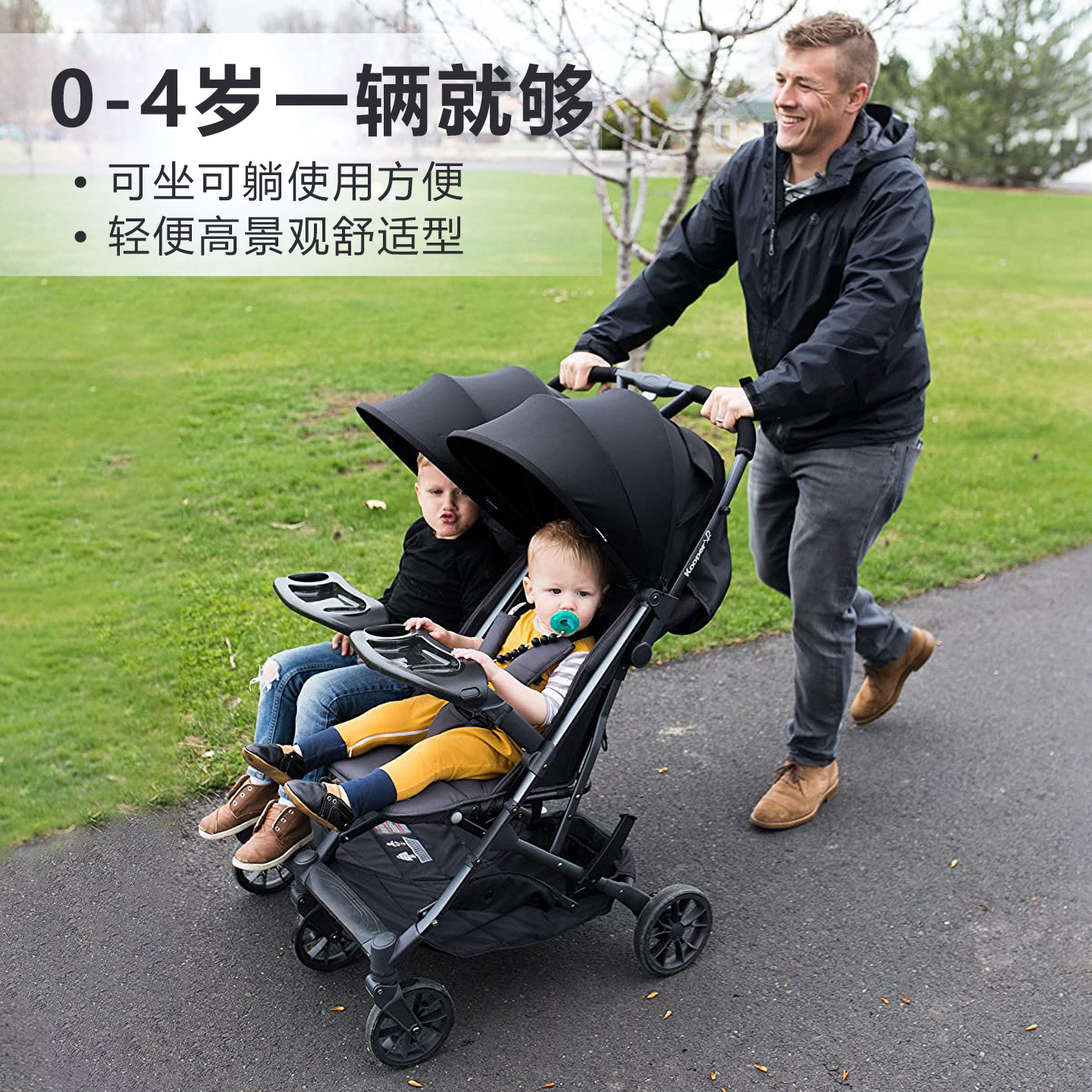 JOOVY双人婴儿车轻便可坐躺0-4岁