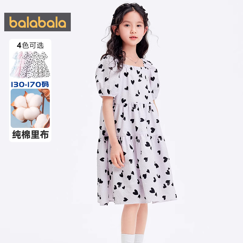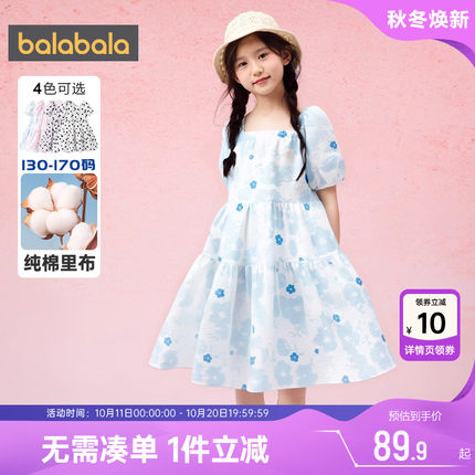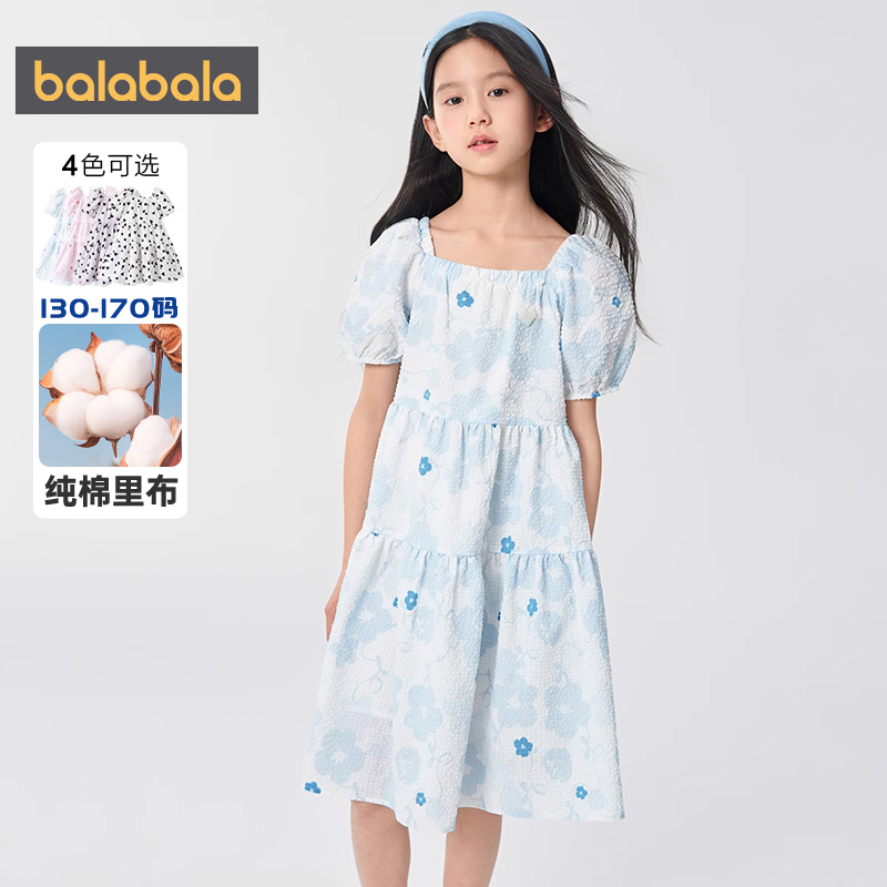 巴拉巴拉女童连衣裙大童宝宝法式裙子夏季新款童装儿童洋气公主裙