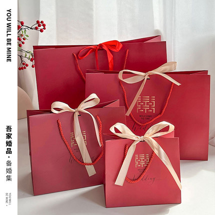 吾家婚品结婚红色小礼品袋嫁妆手提袋伴手礼袋子高级感喜庆纸袋