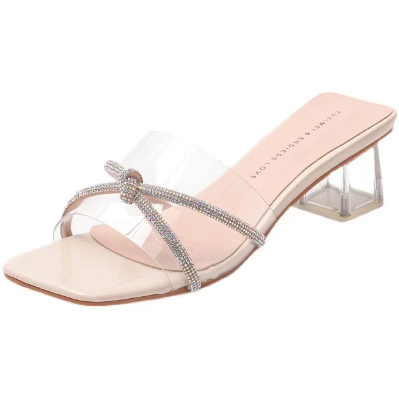 性感凉鞋水晶拖鞋粗跟2023年夏季