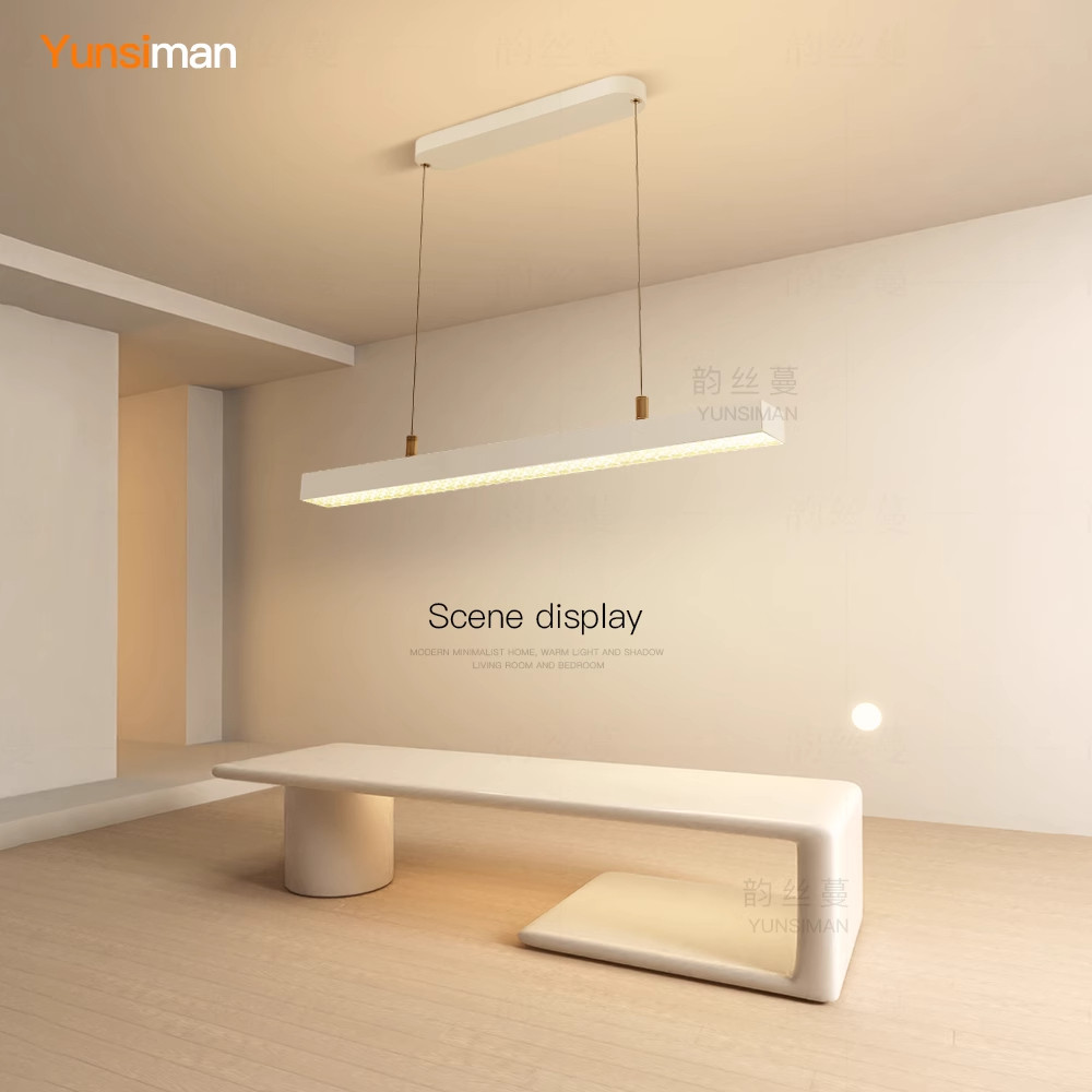 餐厅吊灯遥控电动升降一字长条型现代简约办公室吧台餐桌中山灯具
