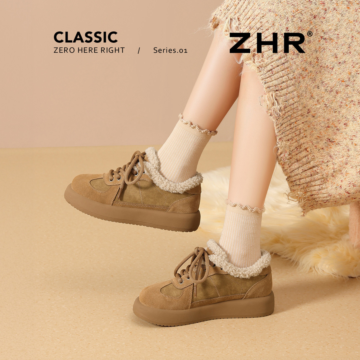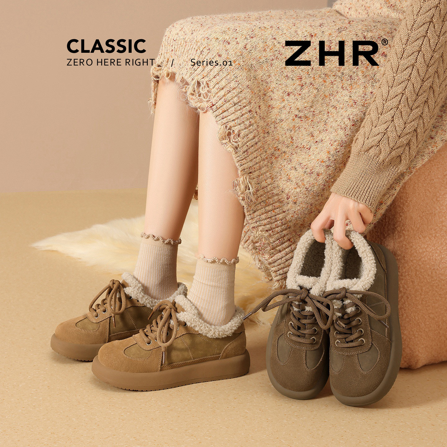 ZHR则则真皮勃肯鞋女2025秋冬新款加绒乐福鞋厚底棉鞋保暖雪地靴