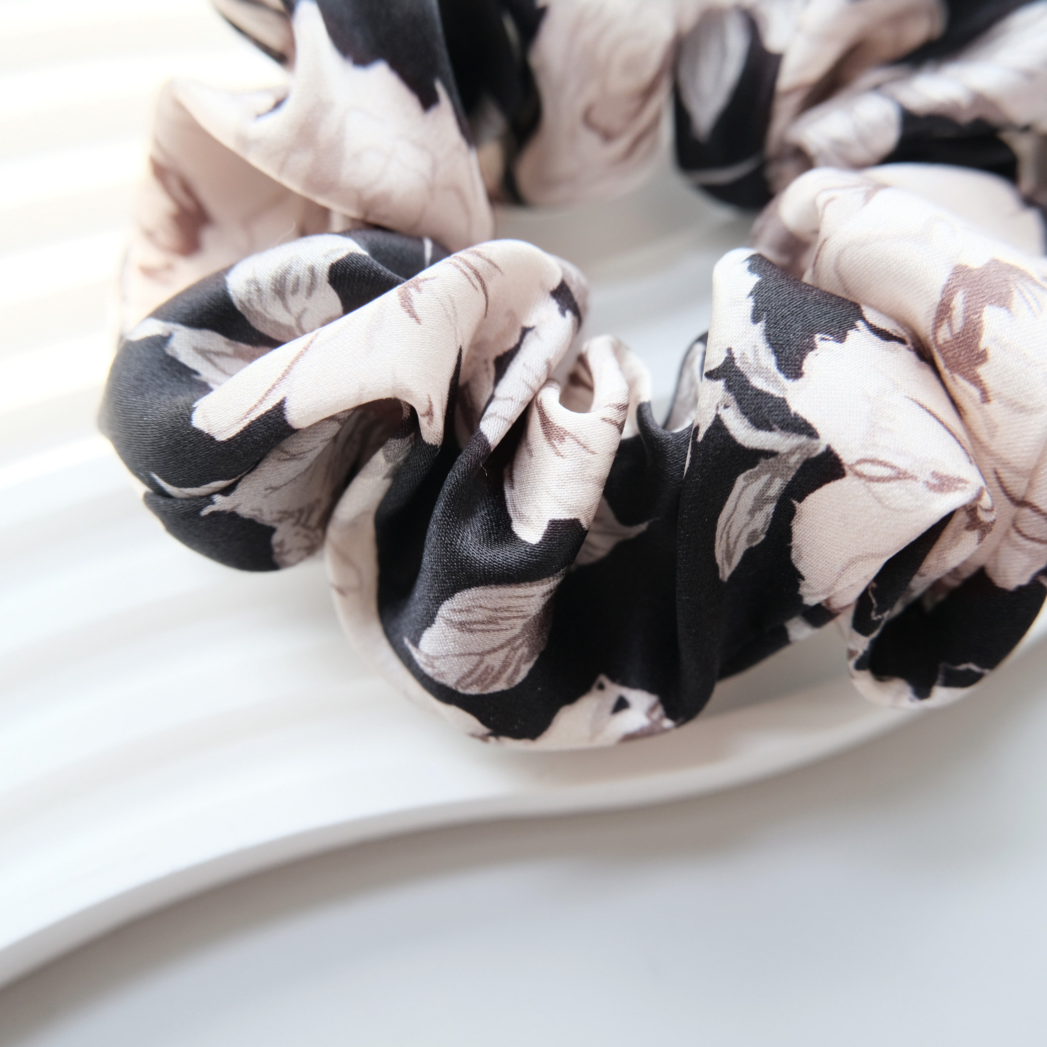英国Liberty黑卡琳玫瑰发圈 进口高级感真丝缎面女碎花发饰大肠圈