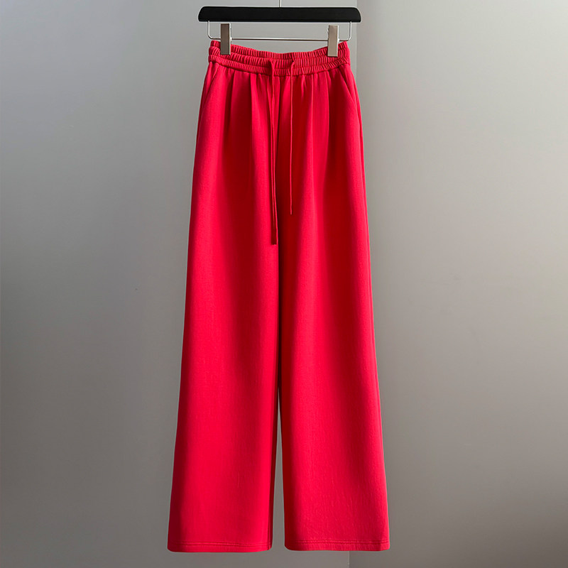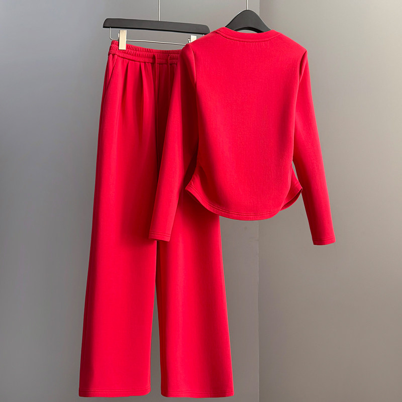 红色时尚休闲套装女2026春季显瘦高级感穿搭长袖阔腿裤运动两件套