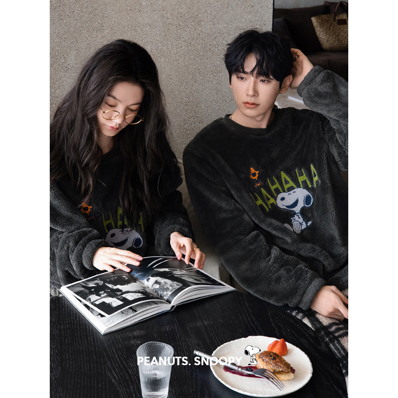 贝妍冬加厚珊瑚绒史努比情侣睡衣