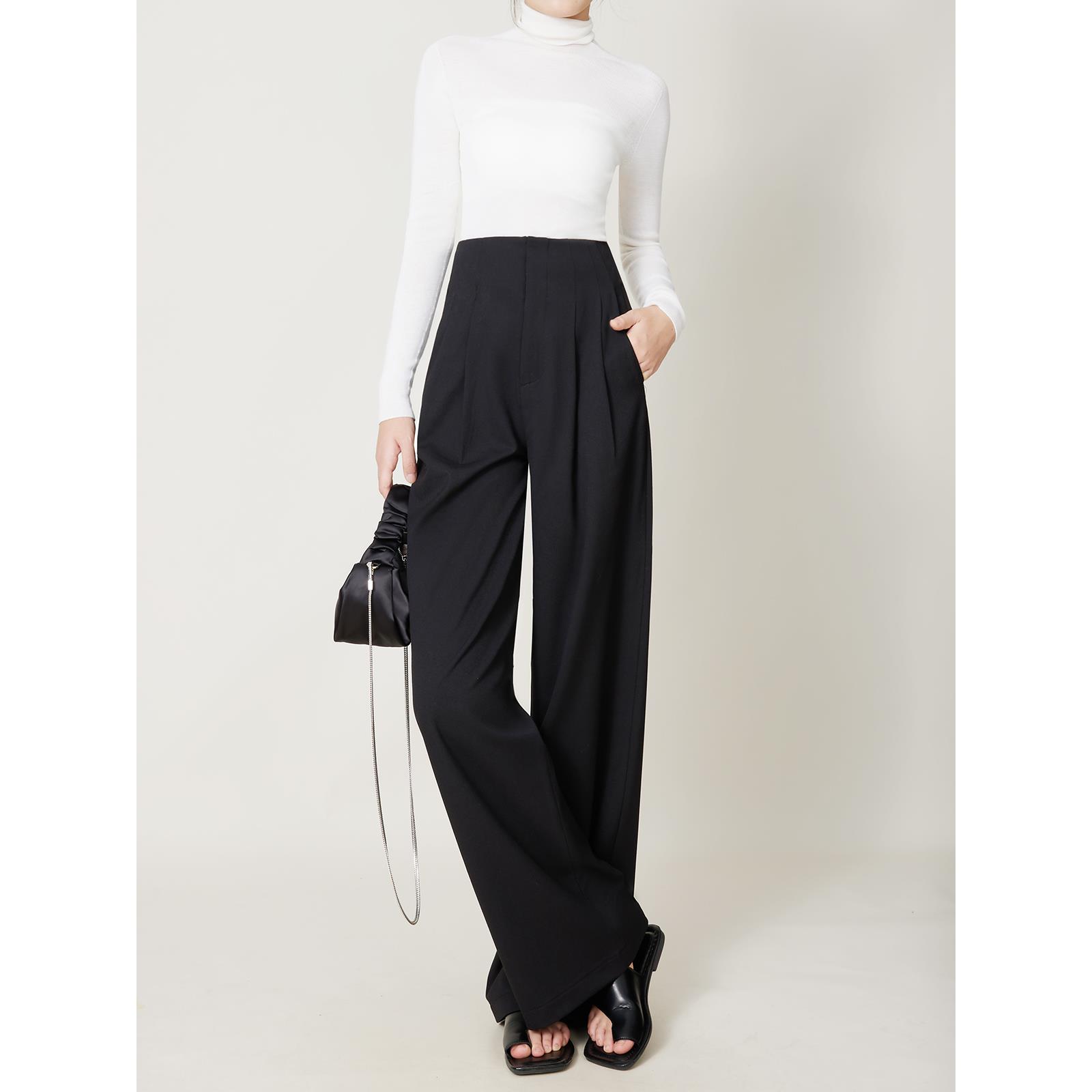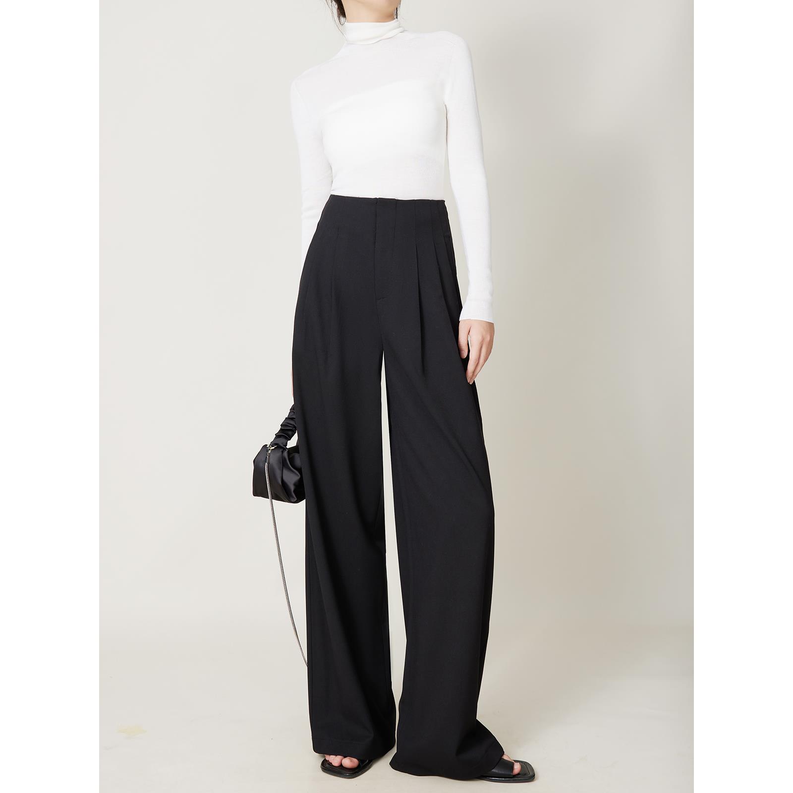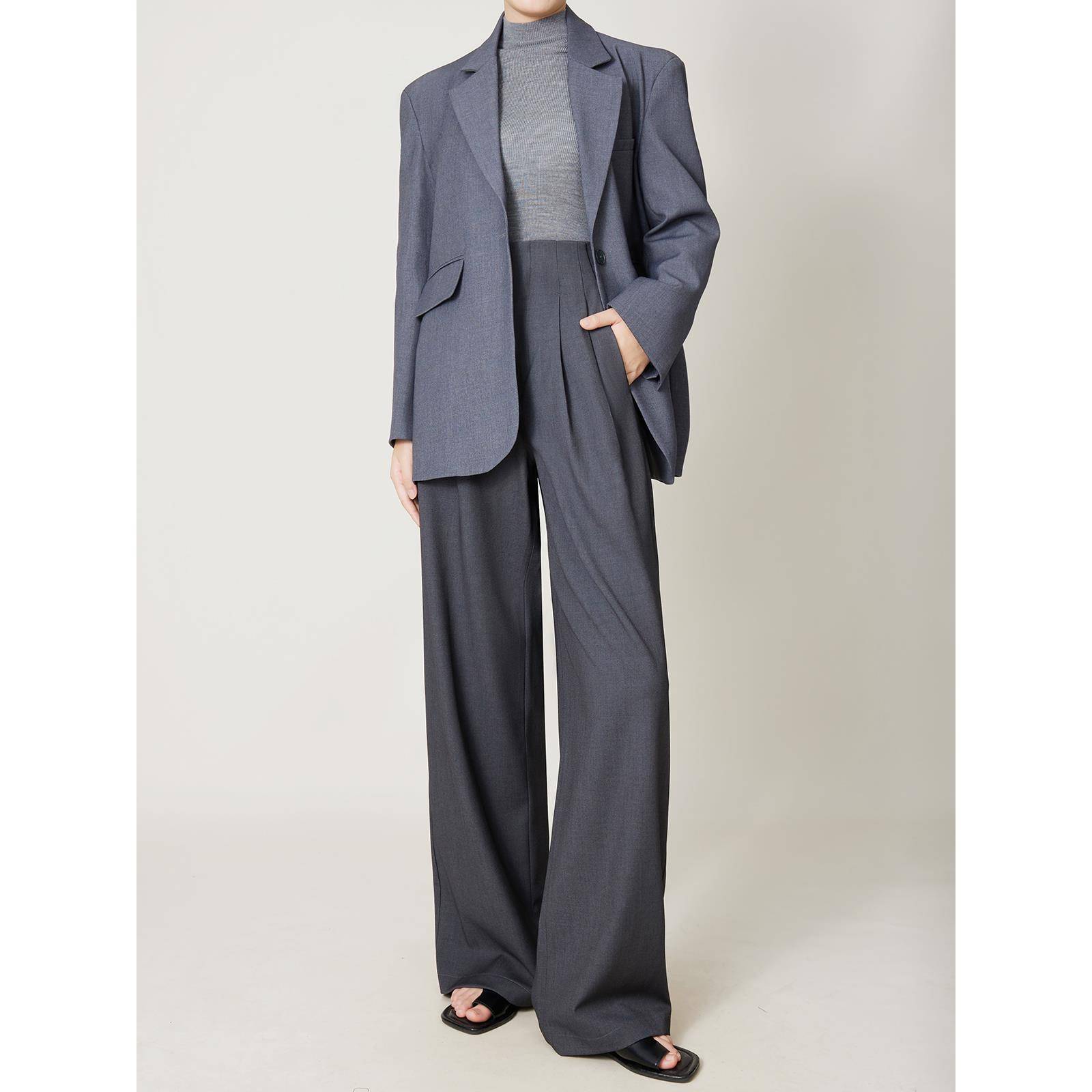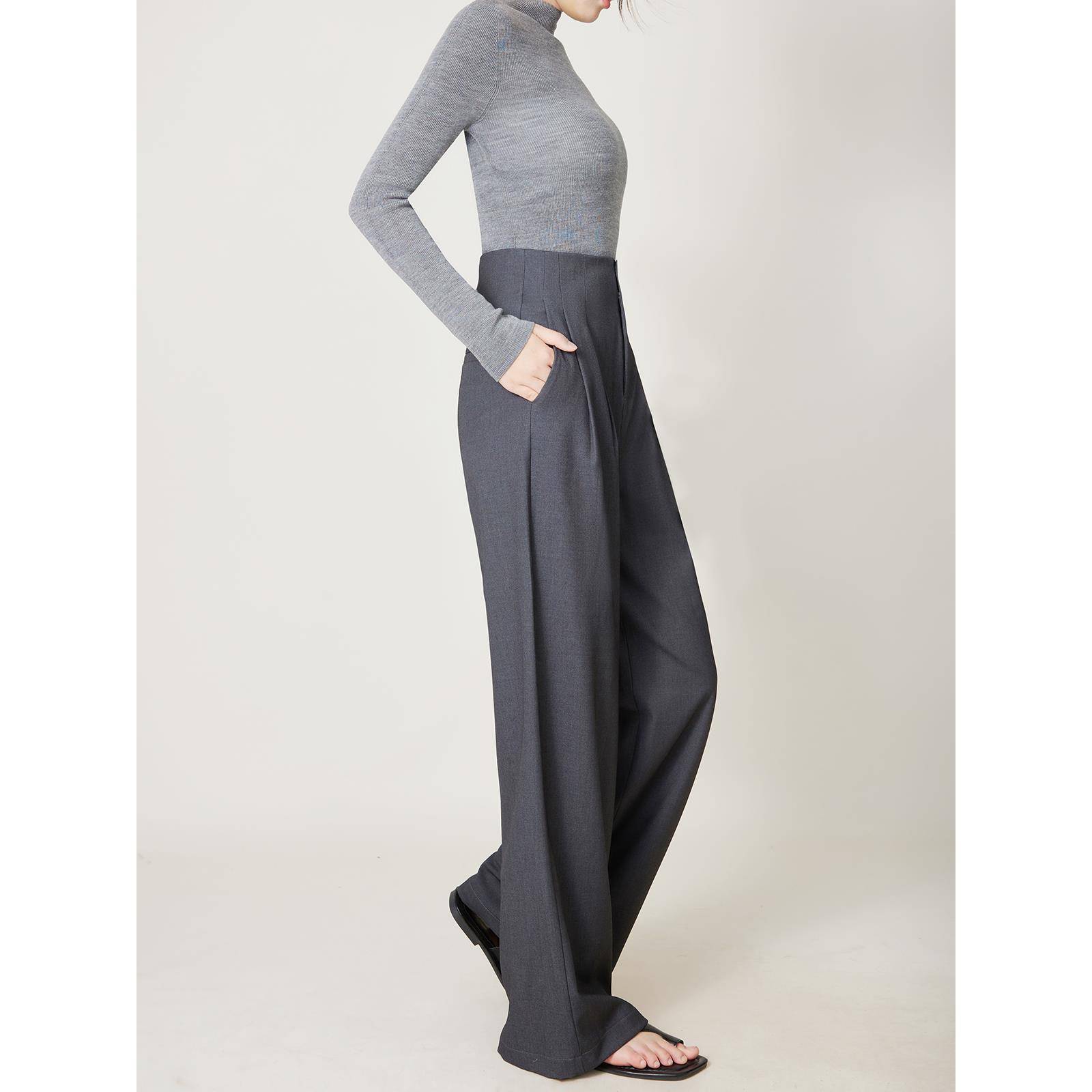 庄周2025春夏天丝羊毛高腰直筒阔腿裤拖地松弛感灰色西装裤女