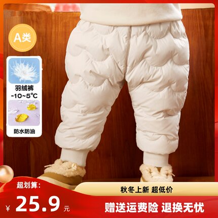 品牌婴儿羽绒裤宝宝保暖裤男童长裤女童运动裤冬2024新款高腰护肚