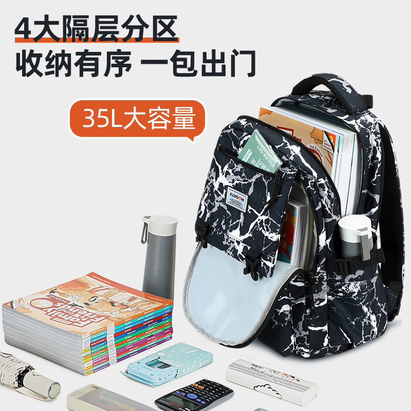 爱迪生书包男初中生大容量背包