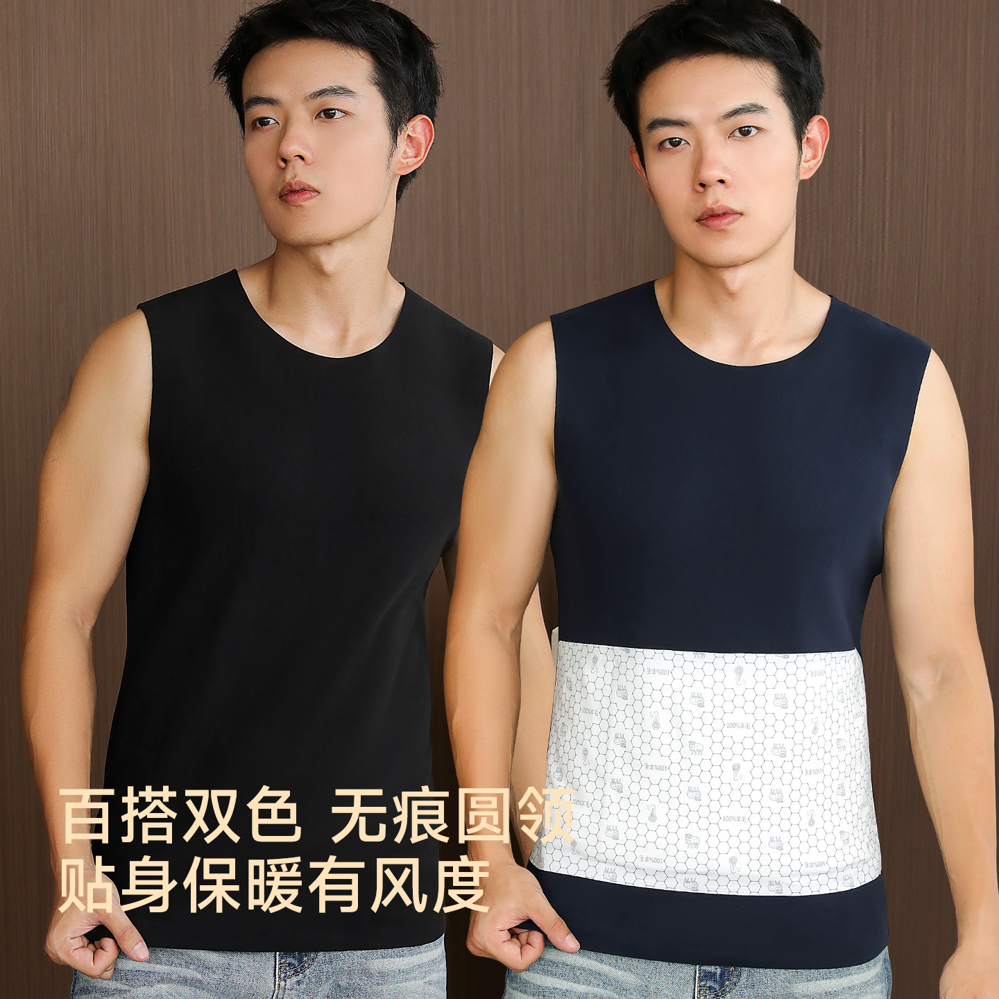 恒源祥男士保暖背心无痕内穿羊毛贴片秋冬季加绒加厚无袖坎肩上衣
