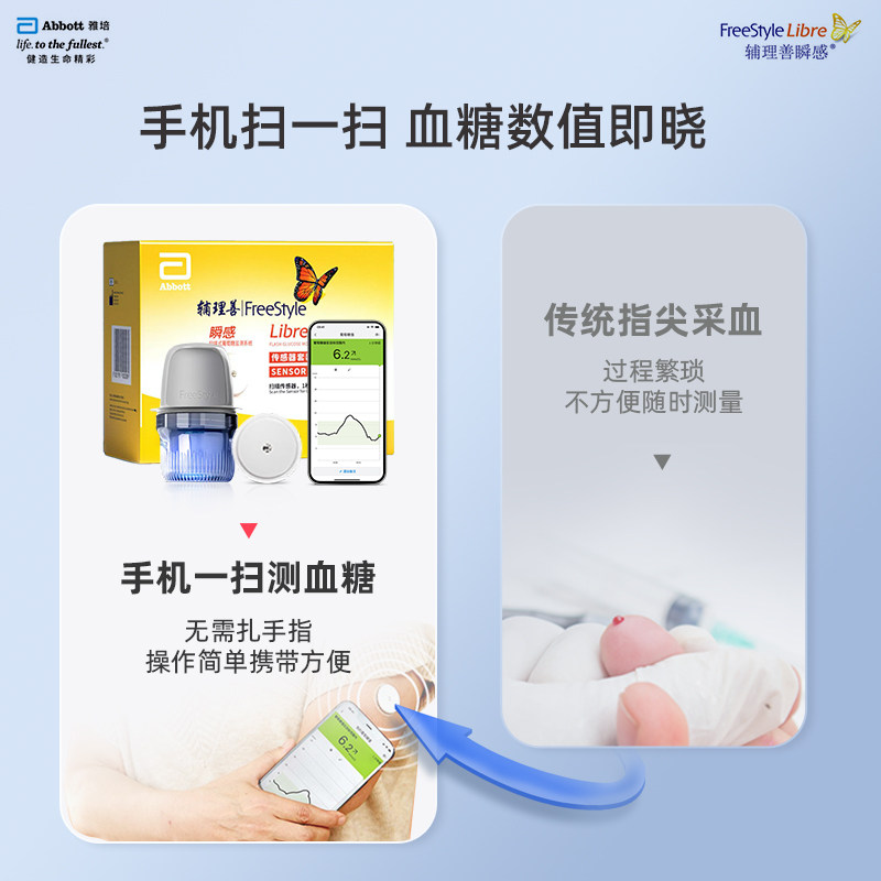 雅培辅理善瞬感血糖扫描仪免采血糖检测仪家用传感器探头动态血糖