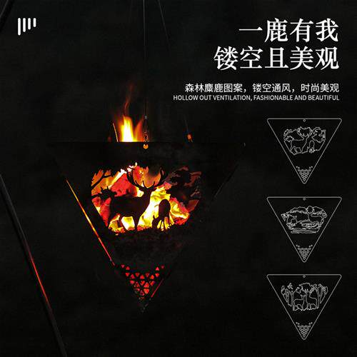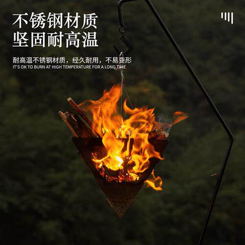 户外篝火炉烧烤吊架不锈钢露营吊台野炊柴火炉便捷炭火炉三角吊炉