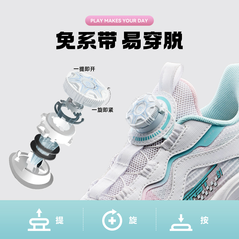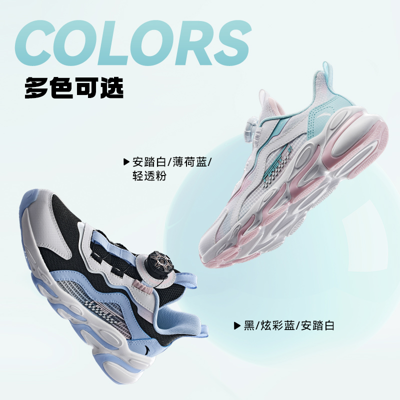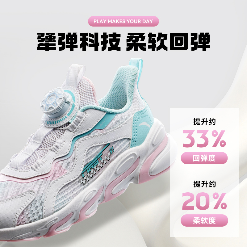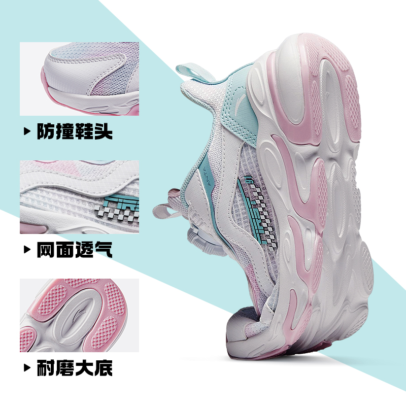 安踏儿童运动鞋女童鞋2025夏季款女大小童跑鞋网面透气宝宝纽扣鞋