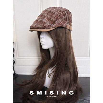 2025韩系新款复古格纹短檐前进帽子女秋季英伦风文艺感百搭画家帽