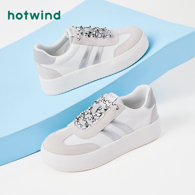 热风厚底小白鞋女款2024年冬季新款百搭休闲鞋子舒适小个子德训鞋