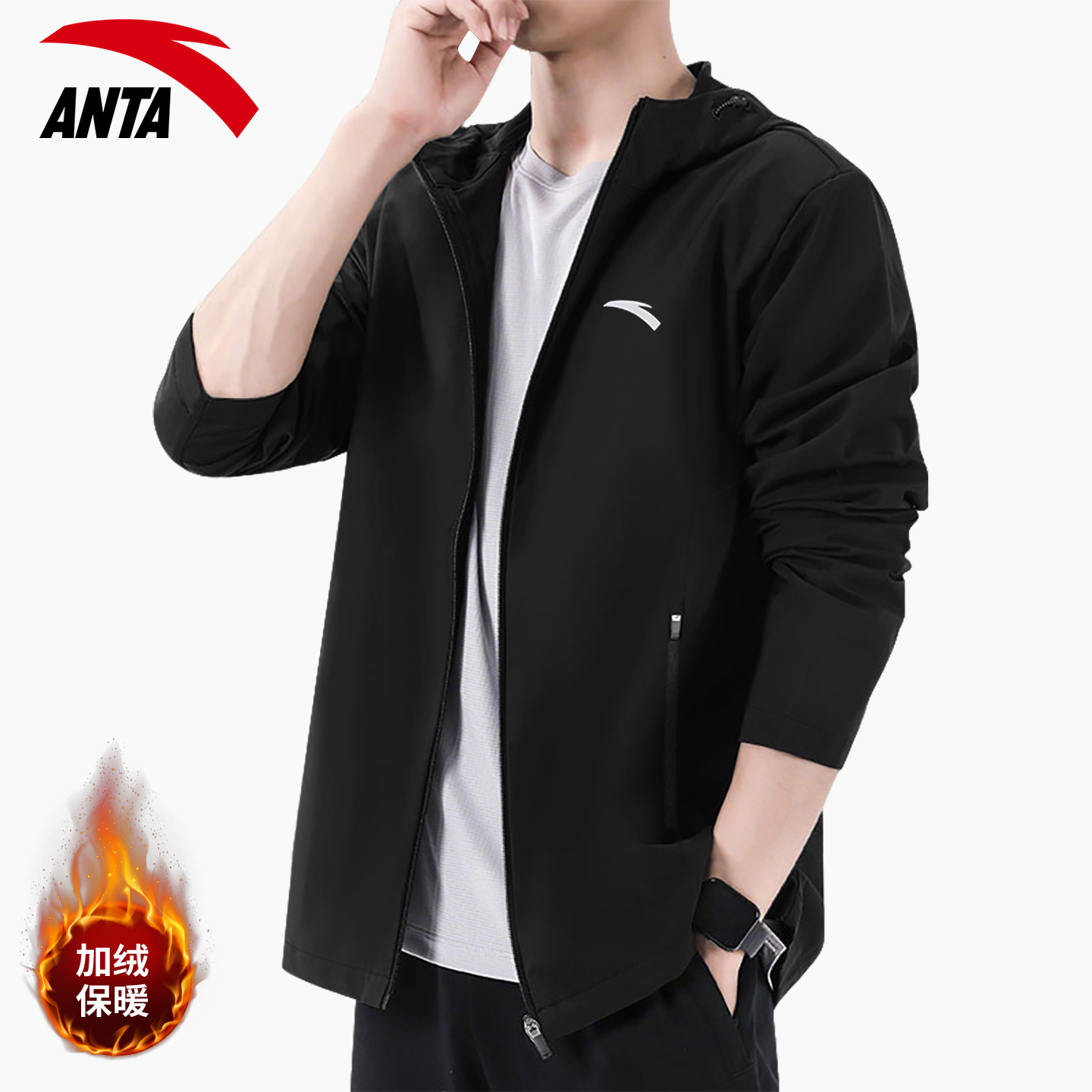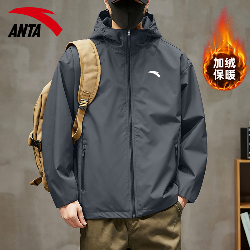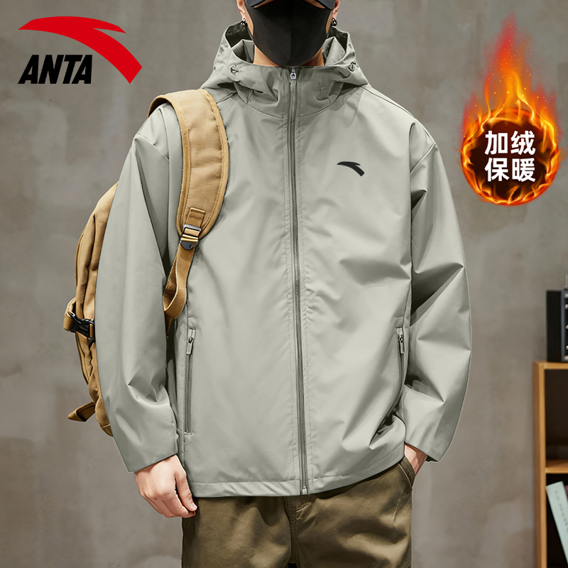 安踏夹克外套男加绒连帽2025冬季梭织保暖开衫防风防泼水运动风衣