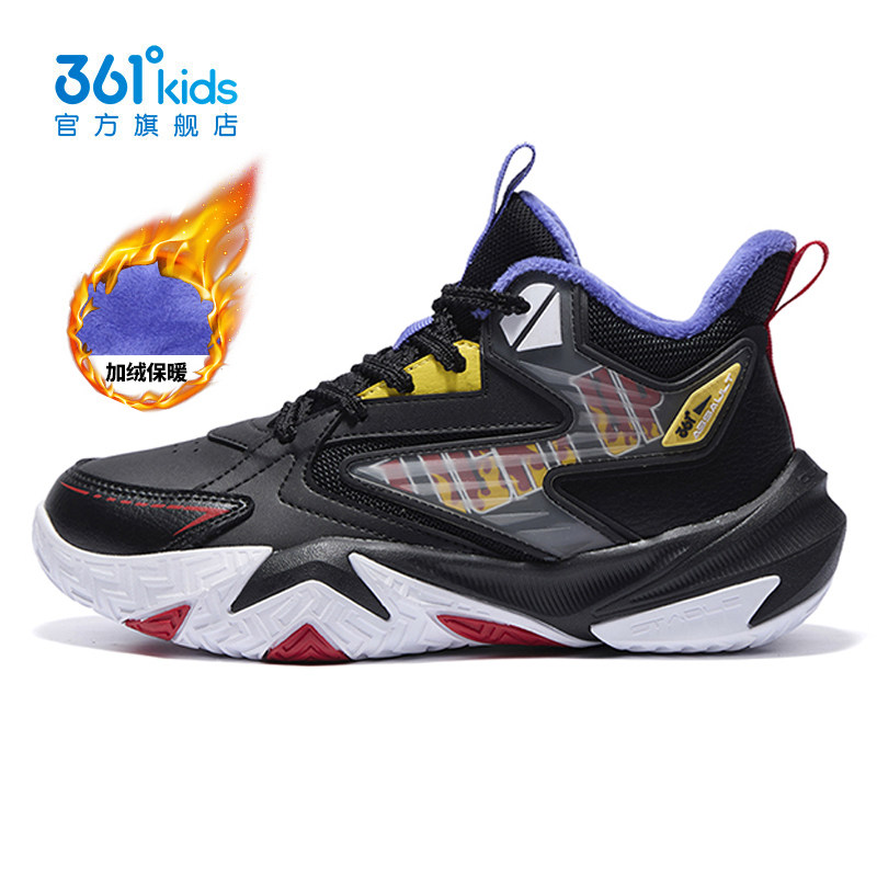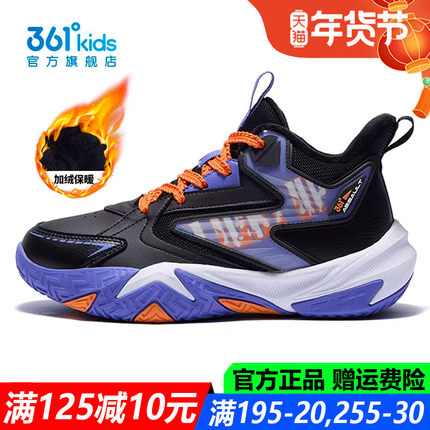 361童鞋男童棉鞋加绒防滑青少年篮球鞋皮面25冬季新款儿童运动鞋