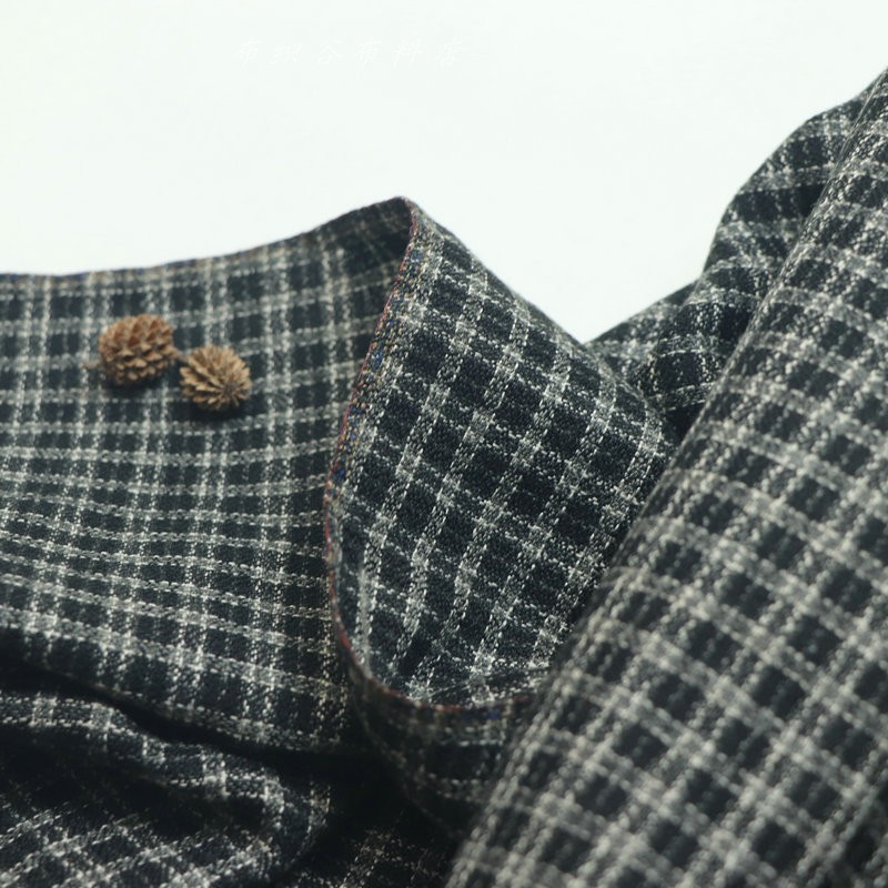 日单经典灰黑色色织小格子设计师布料春秋休闲西装马甲衣服装面料