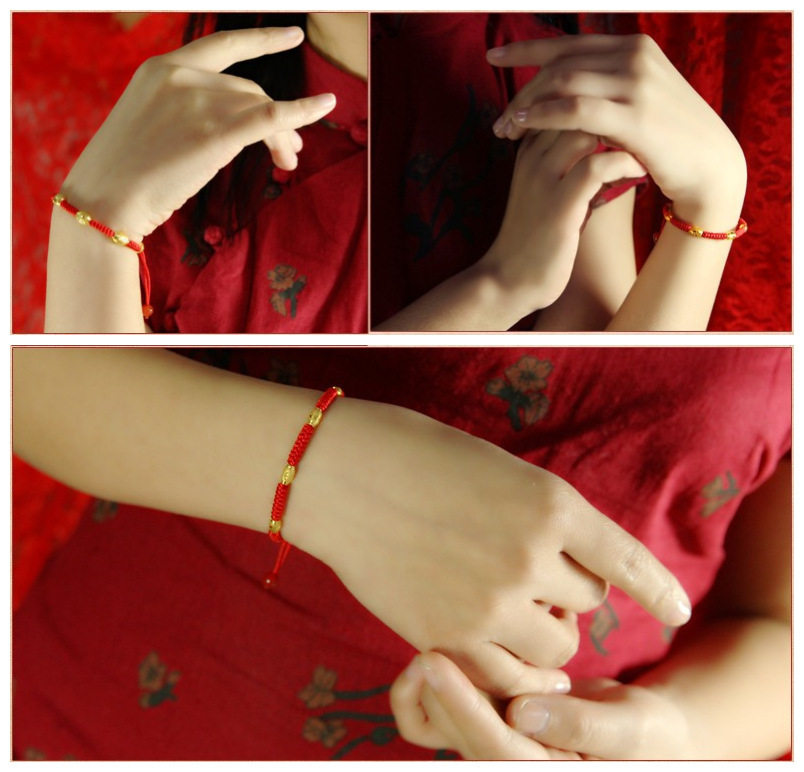 本命年红绳编织手链黄金越南沙金