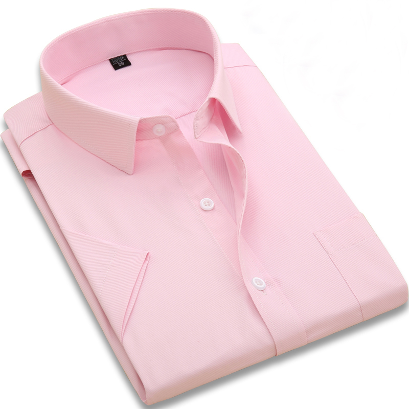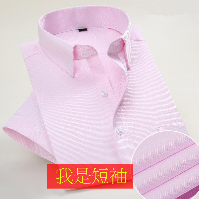 夏季薄款衬衫男短袖职业工装新郎伴郎结婚装浅粉色衬衣西装打底衫