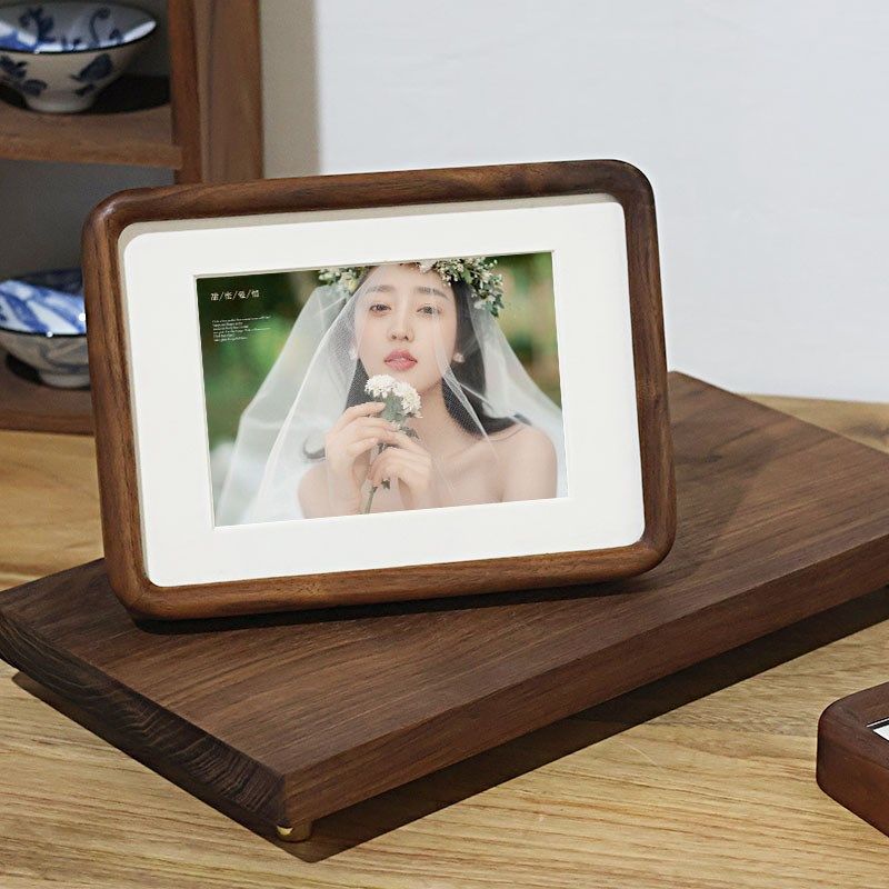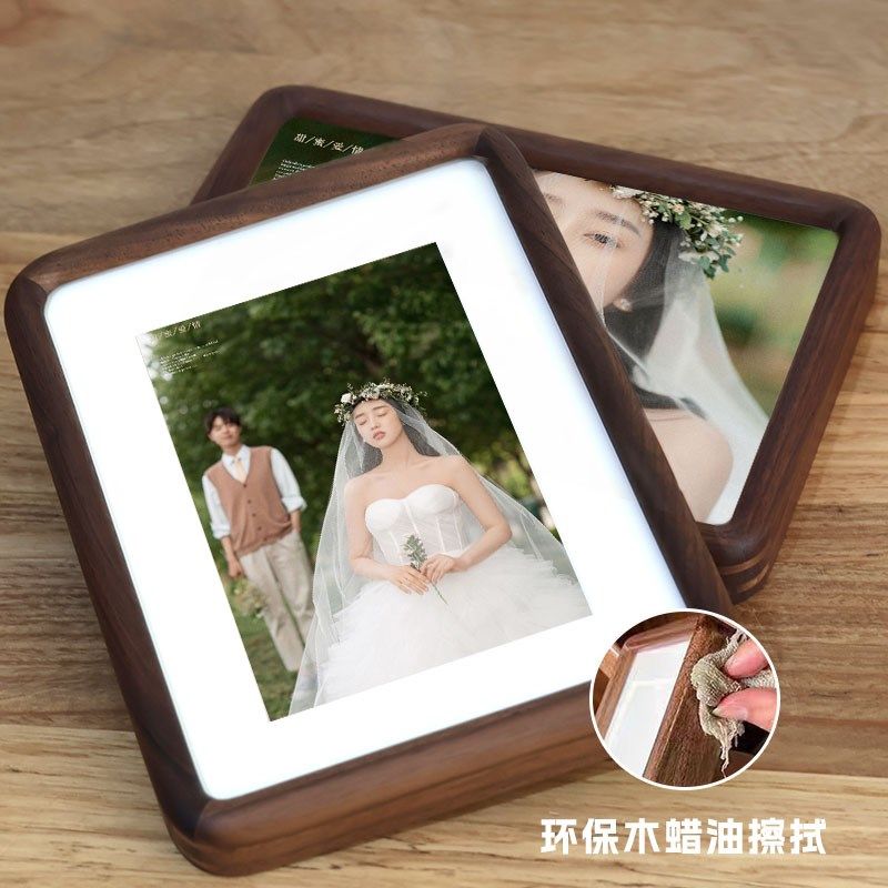 打印照片圆角实木婚纱照相框定制相片洗寸寸胡桃木结婚照摆台