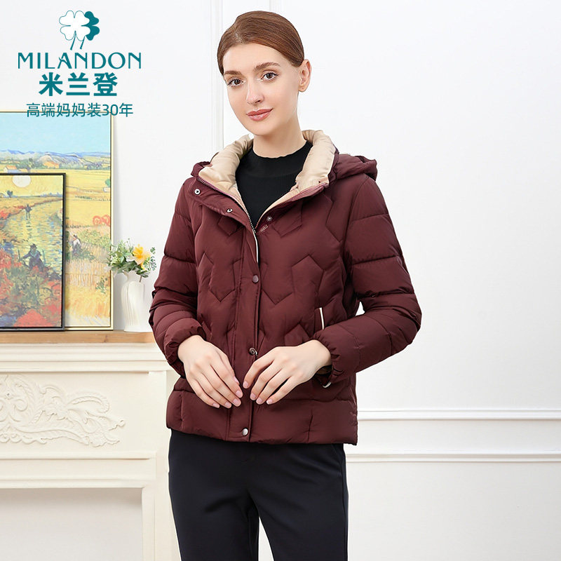 米兰登中老年妈妈装2025年冬季新款时尚连帽棉衣棉服外套女保暖厚